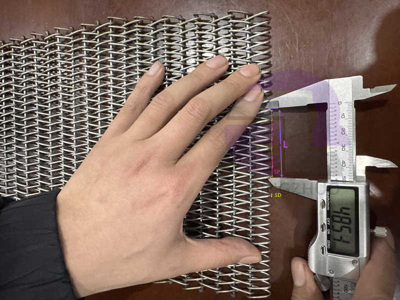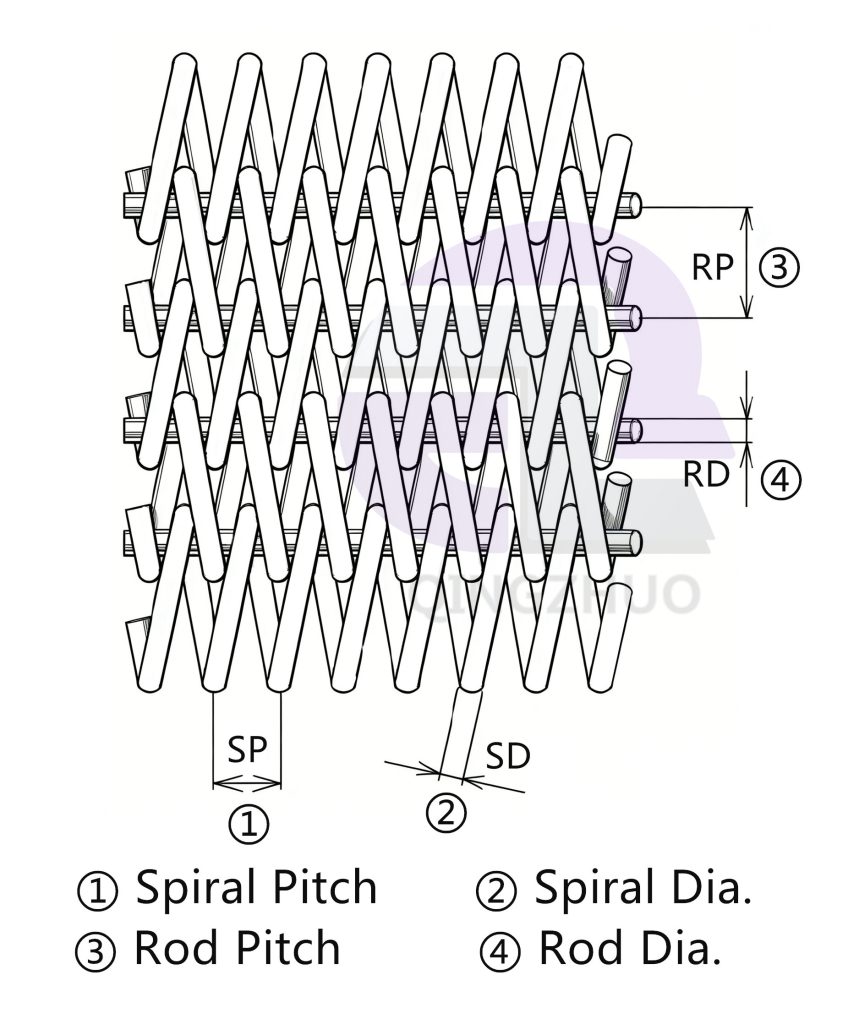 For conveyor belts, we usually only need to know the four key parameters shown in the right-hand diagram: spiral pitch, spiral diameter, rod pitch, and rod diameter. However, what is often overlooked is that the material of the conveyor belt wears down over long-term use. If we only take parameters from a small section, the measurement results will certainly be inaccurate. Therefore, as shown in the upper left-hand picture, we need to measure the entire section. The calculation formula is as follows: